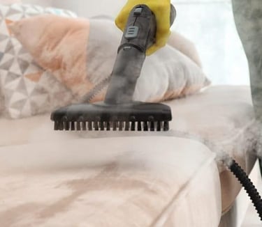 Désinfection, traitement des taches, shampoing, aspiration, et désodorisation.